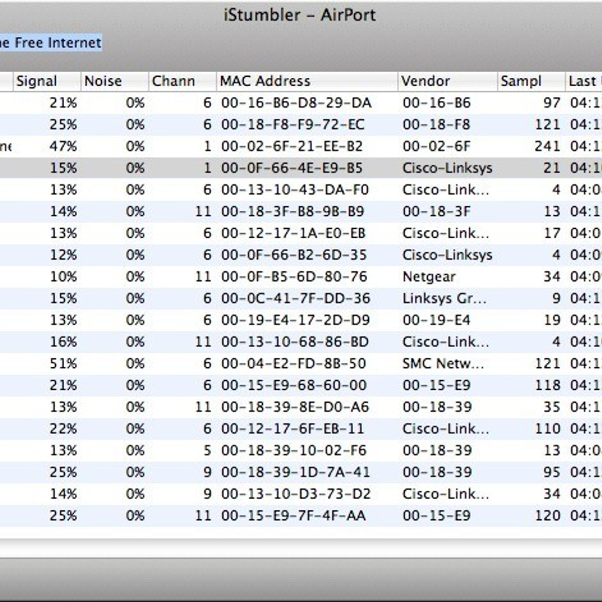 - 'iStumbler'. Freecode.